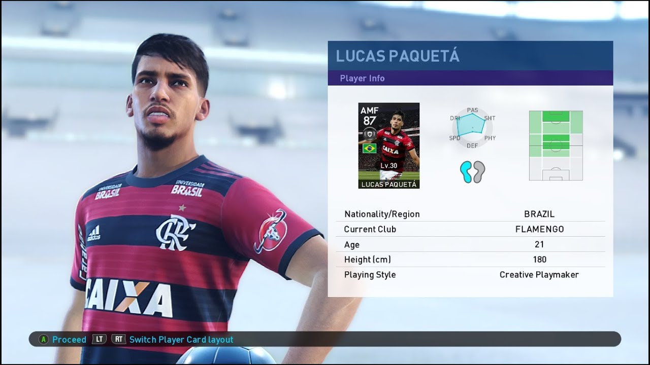 Lucas Paquetá is a free agent in Pro Evolution Soccer 2021. PES 17 Lucas Tolentino Coelho de Lima CR Flamengo Face. Lucas Paquetá PES 2020 Stats.